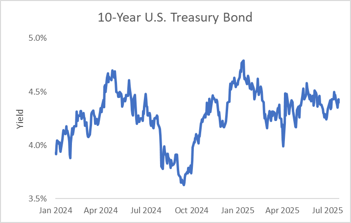As of now, $7.1 trillion is parked in money market assets — nearly double the $3.6 trillion seen before the pandemic. These funds typically invest in highly liquid, short-term instruments and are locking in attractive yields: the 2-year note pays 3.9%, and 3-month Treasury bills offer 4.3%. With Wall Street expecting four Fed rate cuts over the next year, now may be a prime opportunity to secure current yields on shorter-duration debt.