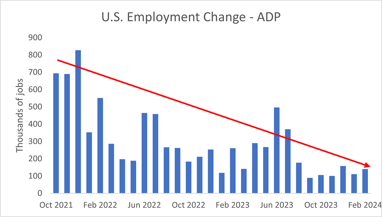 This would keep with the February employment data from ADP. According to the payroll-processing firm, companies added 140,000 new workers last month compared to 111,000 in January and the one-year average of 204,000...