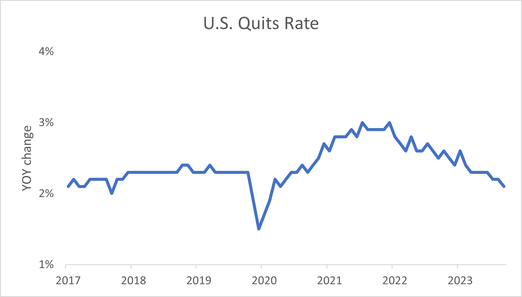 Each of the data point to a labor market that continues to gradually loosen. In other words, the pace of hiring continues to slow while the number of job openings is on the decline. Both of these metrics are moving back toward pre-pandemic levels of activity. That’s something our central bank has sought as a guide for when to consider cutting interest rates once more.