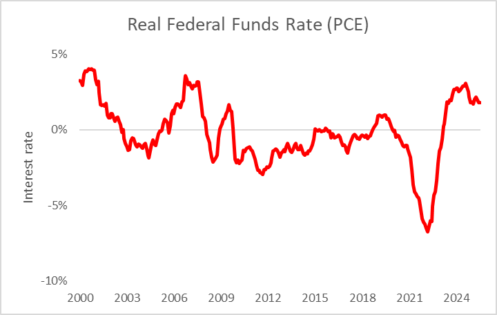 Such an outcome would imply a real interest rate (fed funds minus PCE) of 1.70%.