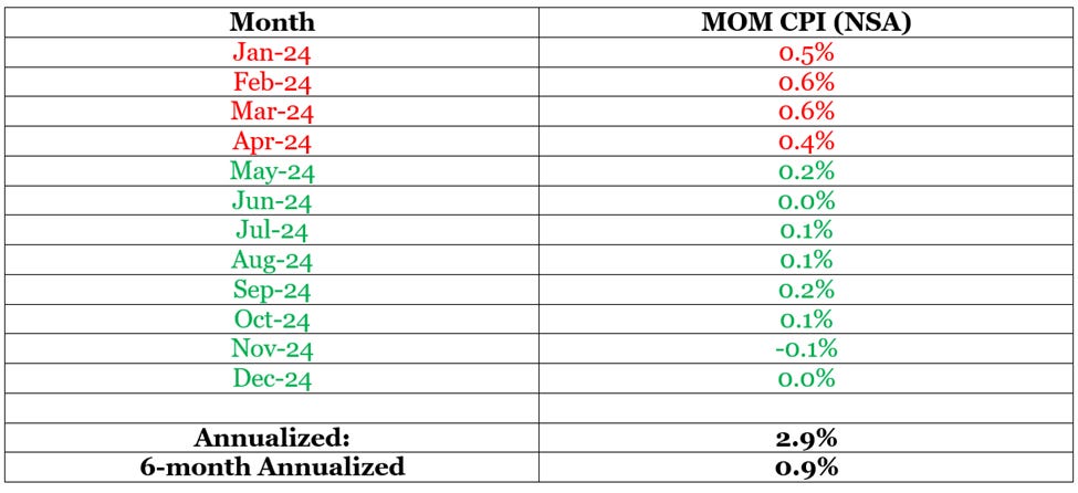 But to get a sense of the trend moving forward, we can observe the six-month average. Because, that number removes the older data that’s about to disappear. And according to the result, the pace of monthly inflation growth since July has averaged just under 0.07%. That works out to just 0.9% on an annualized basis....