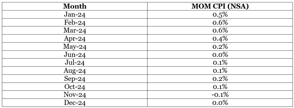 December CPI was unchanged on a non-seasonally adjusted basis.