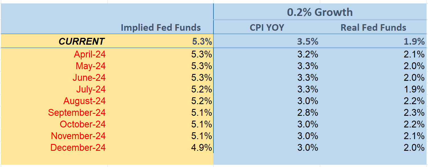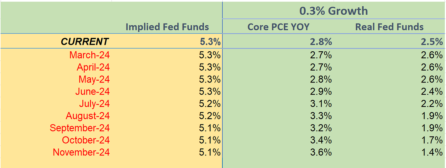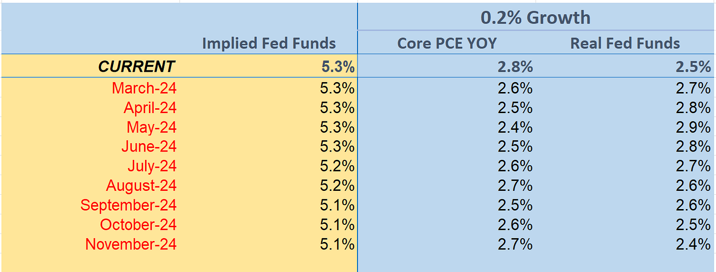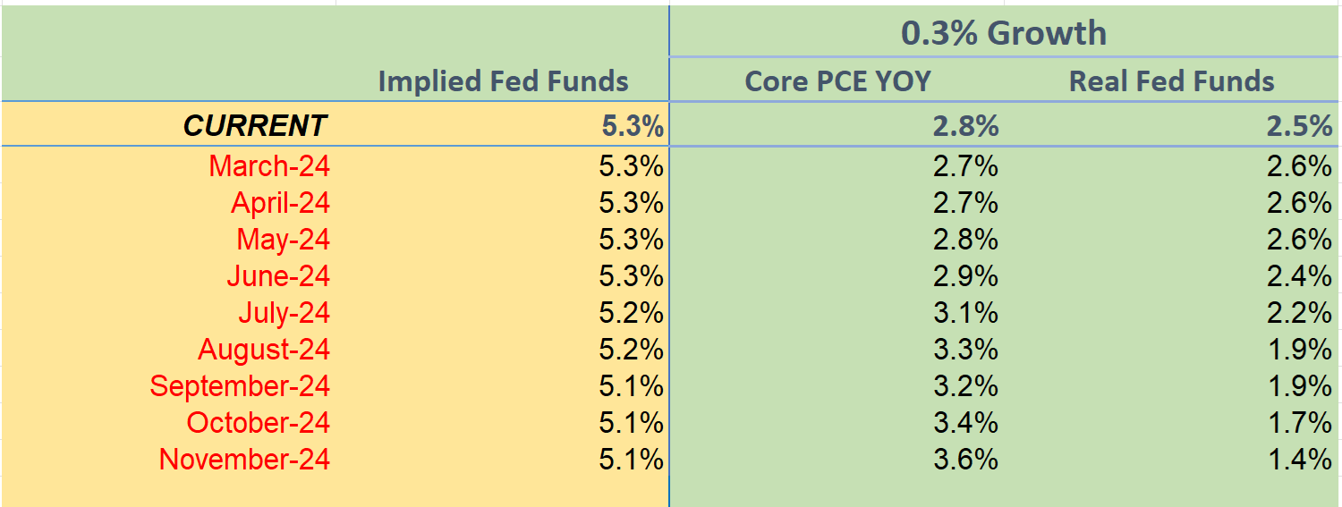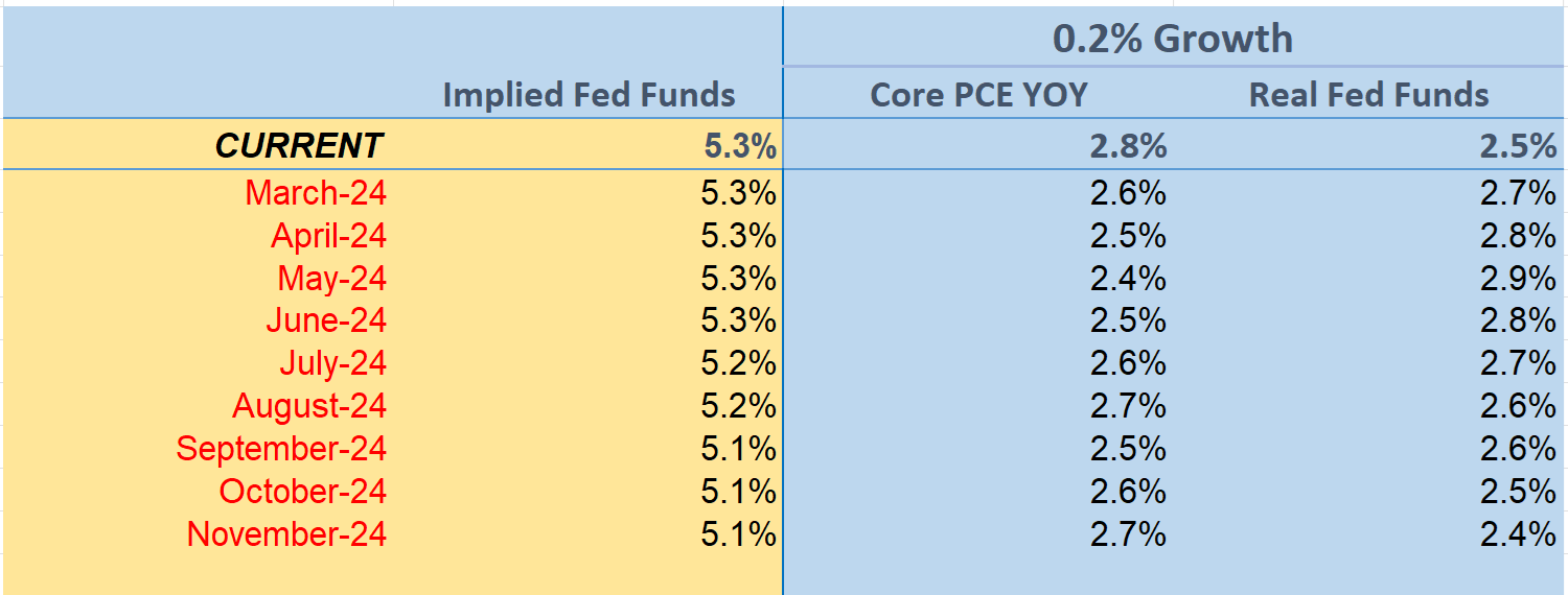 Over the last 6- and 12-month periods, core PCE has averaged a 0.2% growth rate. If we project those type of price increases moving forward, real interest rates are still at 2.4% by the end of the year…