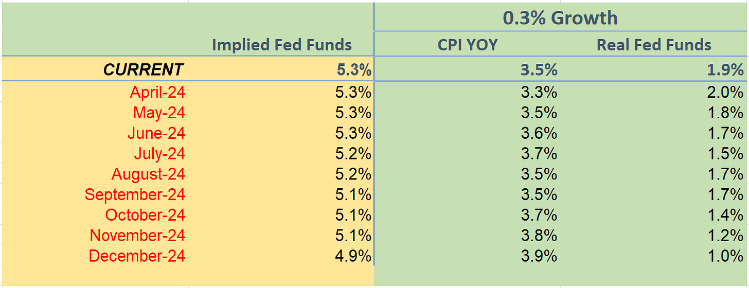 Now based on the last 6-, 12-, and 24-month periods, the average rate of monthly CPI growth has been 0.3%. Doing the math, here’s what real rate of interest will look like moving forward…