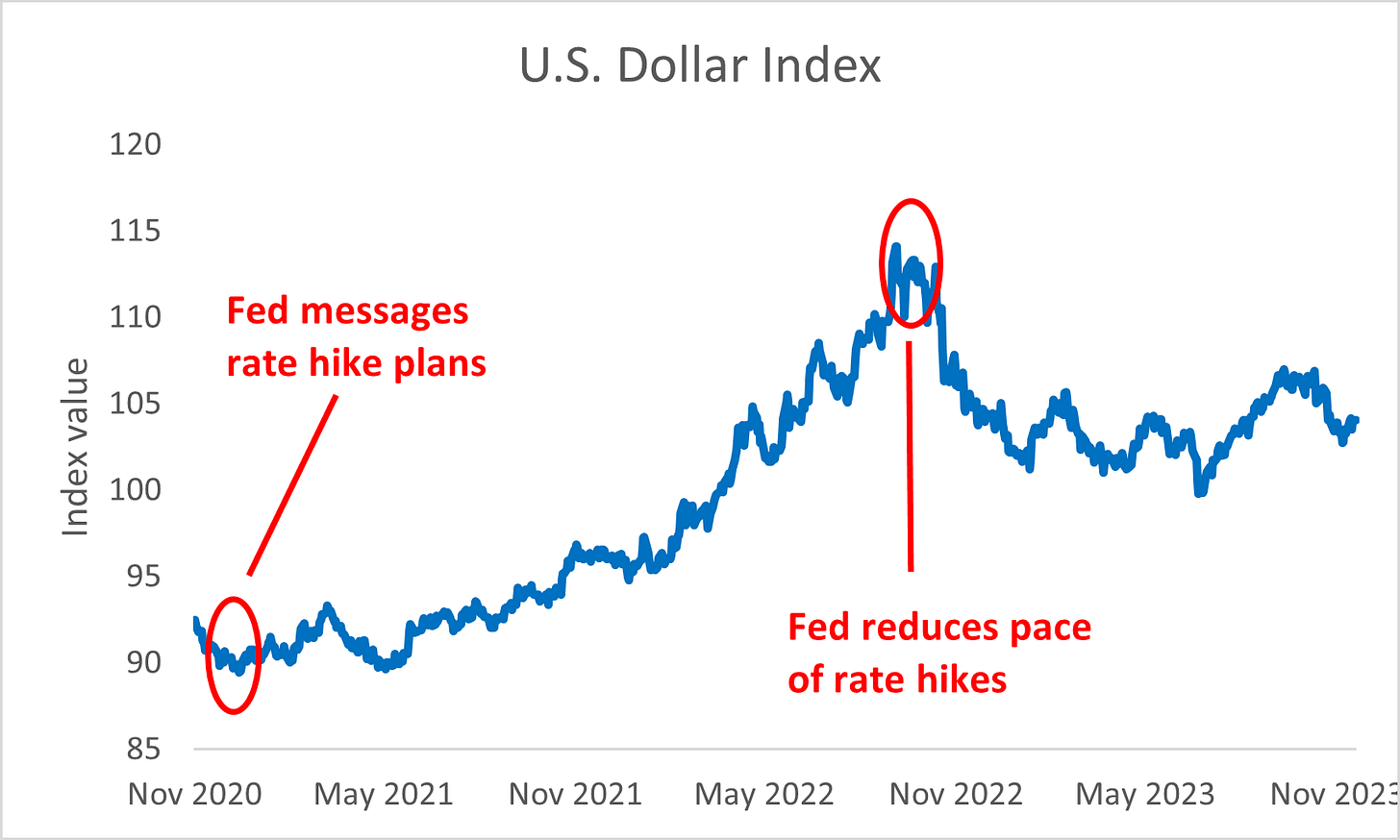 After having raised rates by 75 basis points at three consecutive Federal Open Market Committee (“FOMC”) meetings, the central bank decided it could back off. It increased the fed funds rate by 50 basis points in December 2022 and then by 25 basis points in January 2023. That told investors that interest rates were close to the peak.